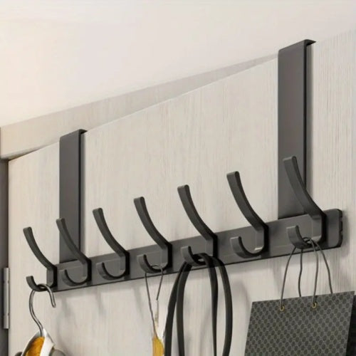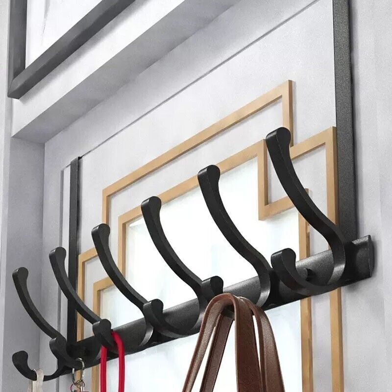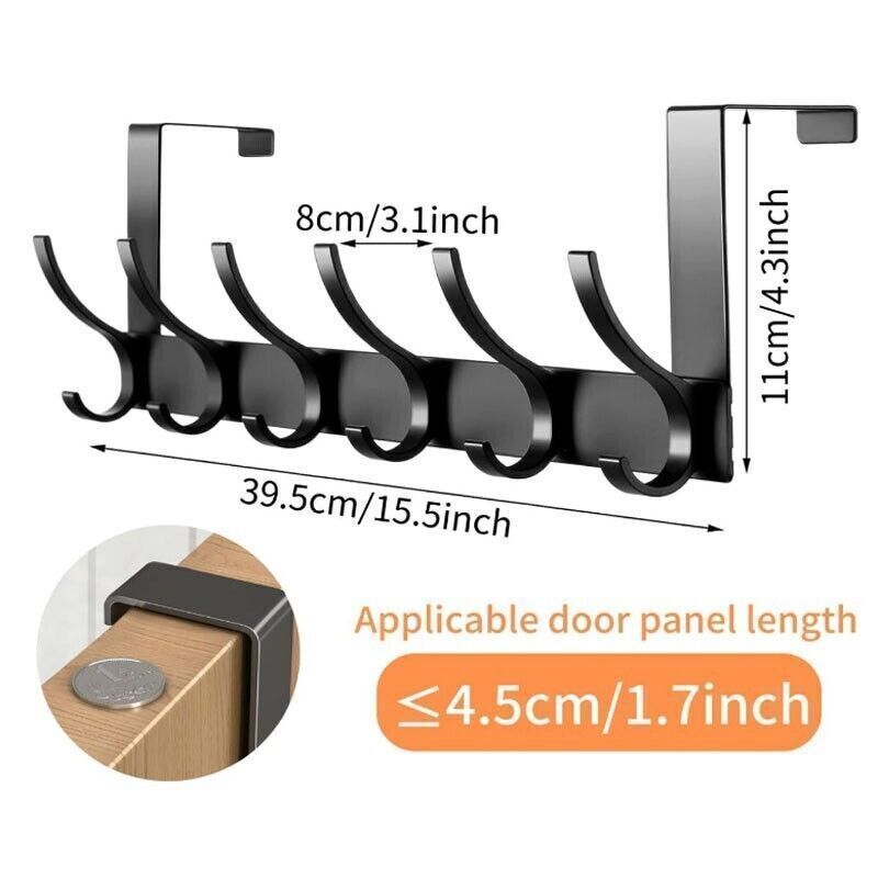 EASY INSTALLATION & USE - No drilling needed. just insert two hanging brackets into this door hanger hook and hang it over your door. 6 large hooks organize scarves, belts, ties, shirts, jackets, robes, towels, handbags, jewelry, caps, hats, keys, umbrellas, and other accessories.Great for bathroom, bedroom, kitchen and office etc.